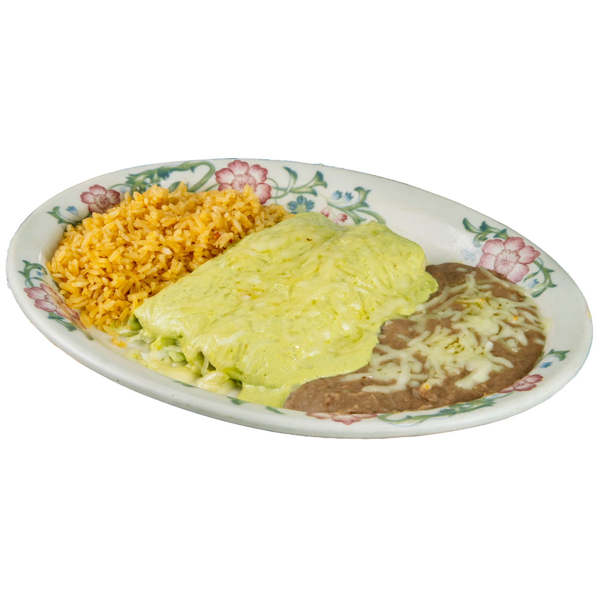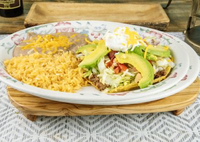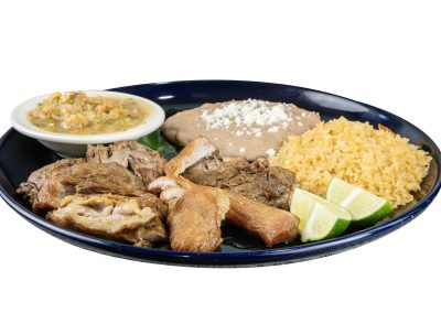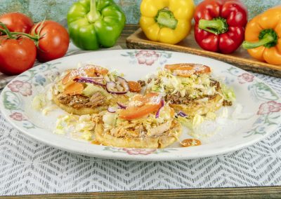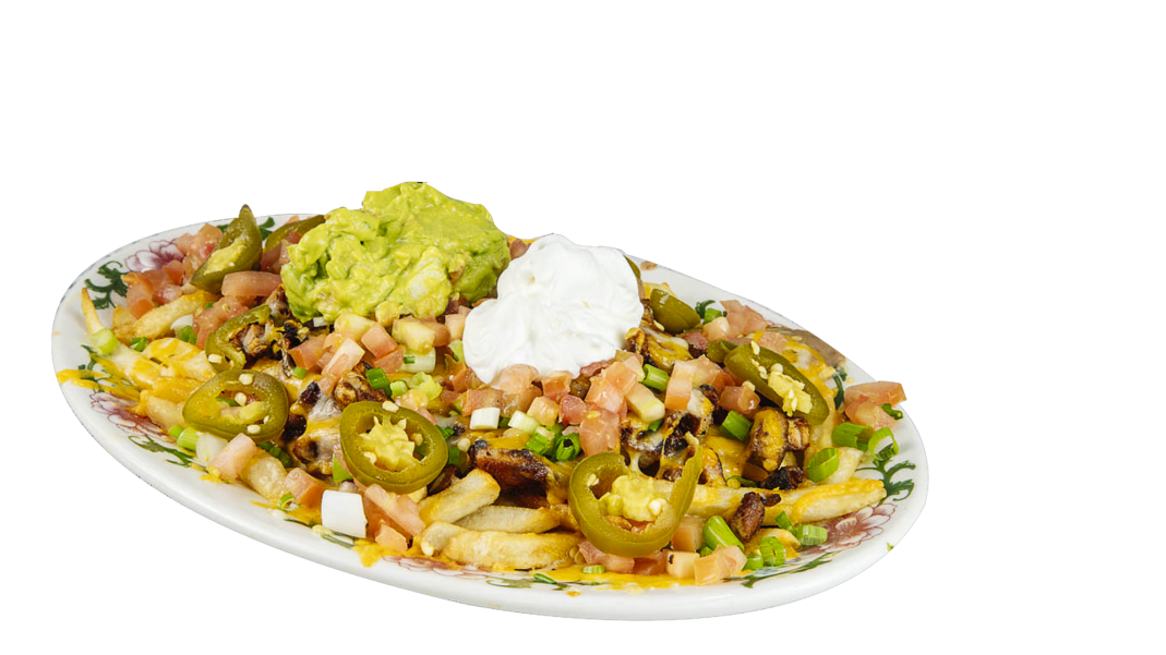Prepared with special green tomatillo sauce, and spices topped with sour cream and mozzarella melted cheese.