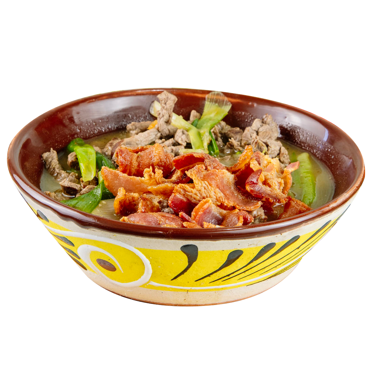 Our house specialty dish cooked with beef, bacon, scallion, seasoned and served with its own juice.